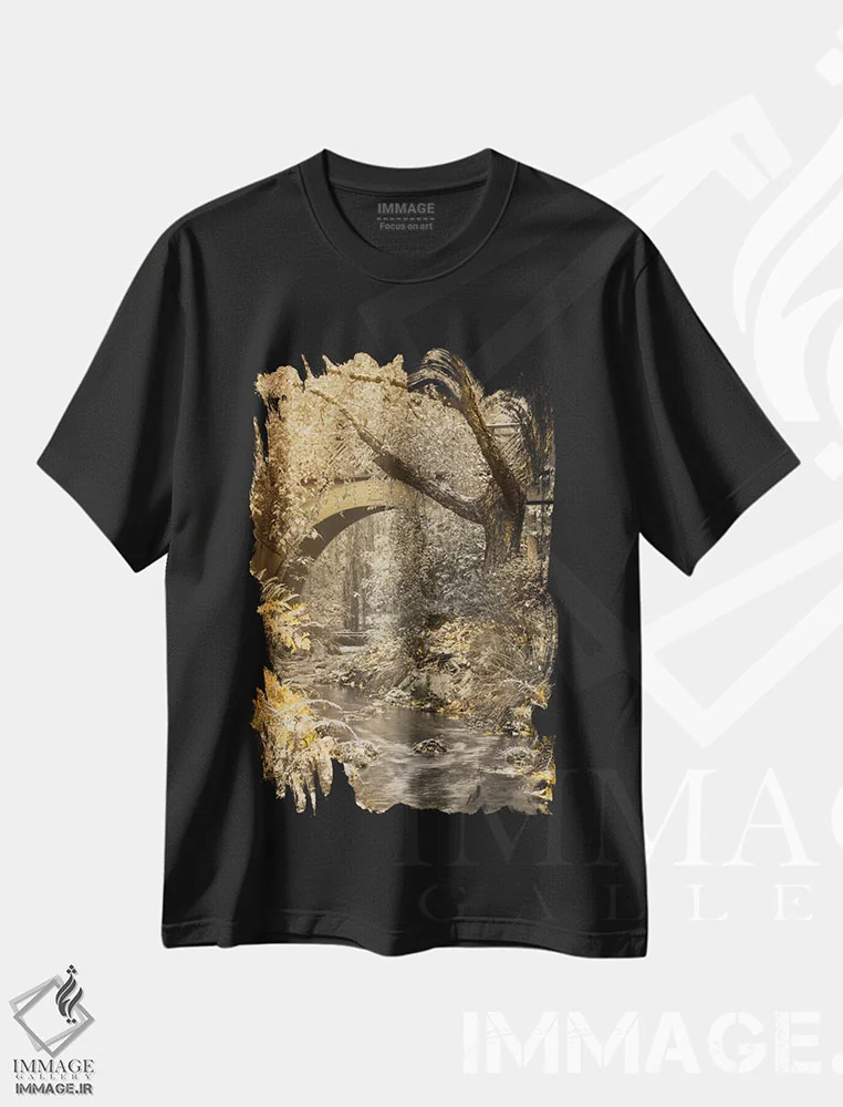 تی شرت طبیعت گردی با طرح «جریان زیر پل»؛ آرامش آب و سبزی جنگل