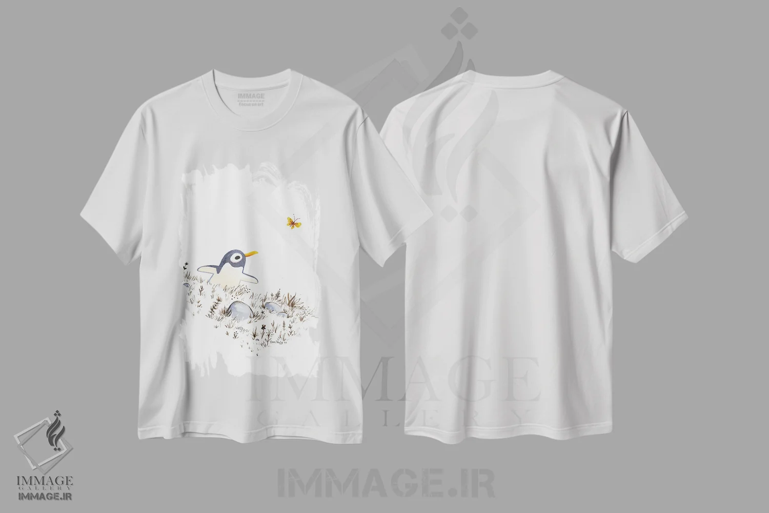 تی شرت «پنگوئن و پروانه»؛ تصویرسازی شاعرانه از تضاد طبیعت