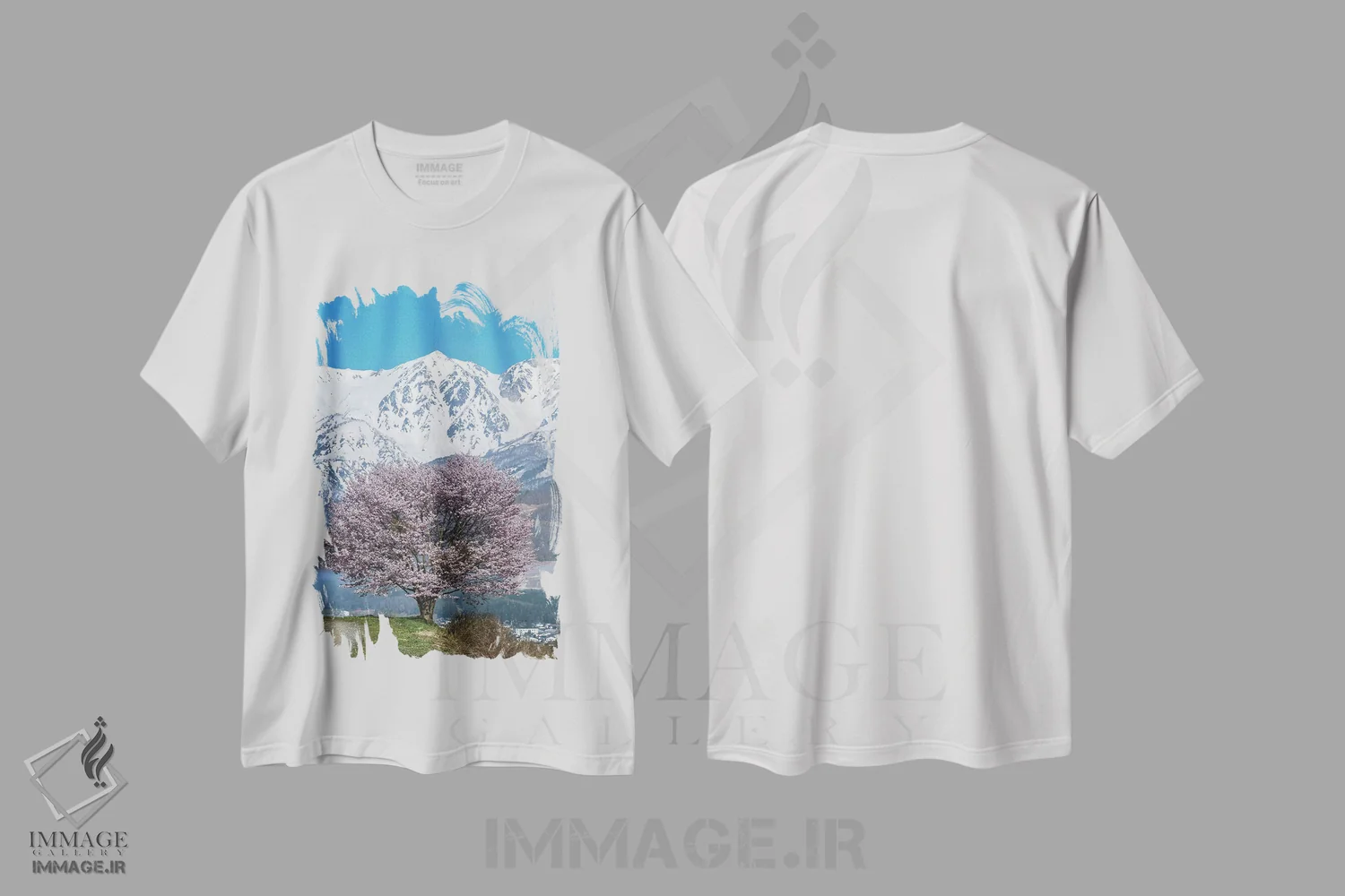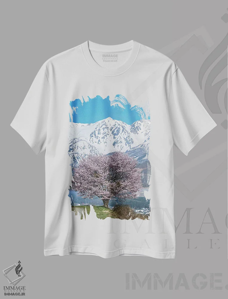 تی شرت «بهار در ژاپن چهار»؛ ترکیب کوهستان و شکوفه های بهاری