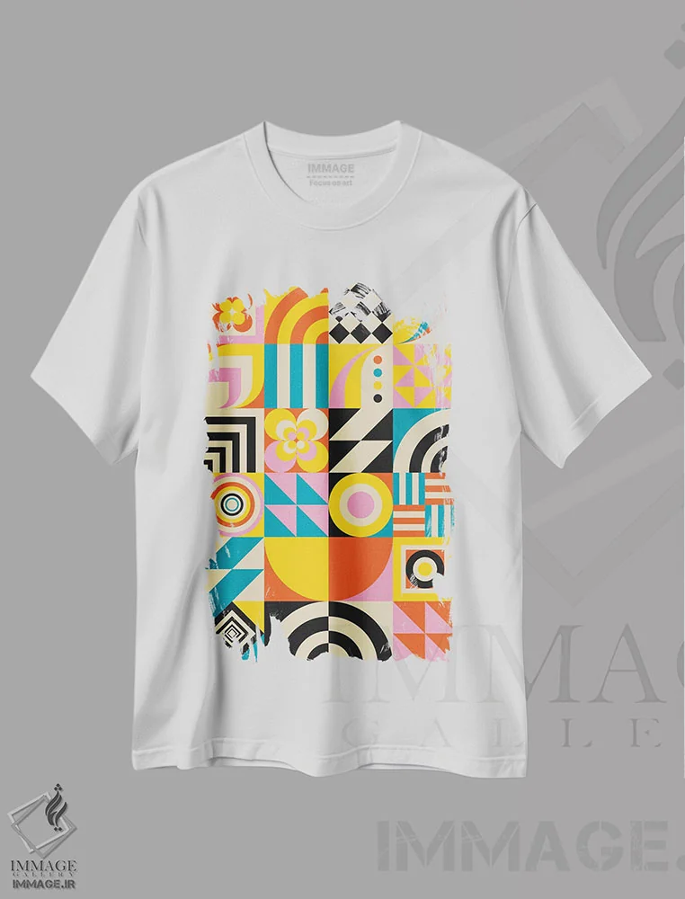 تی شرت «ترکیب هندسی رنگارنگ»؛ مد پاپ برای روزمره