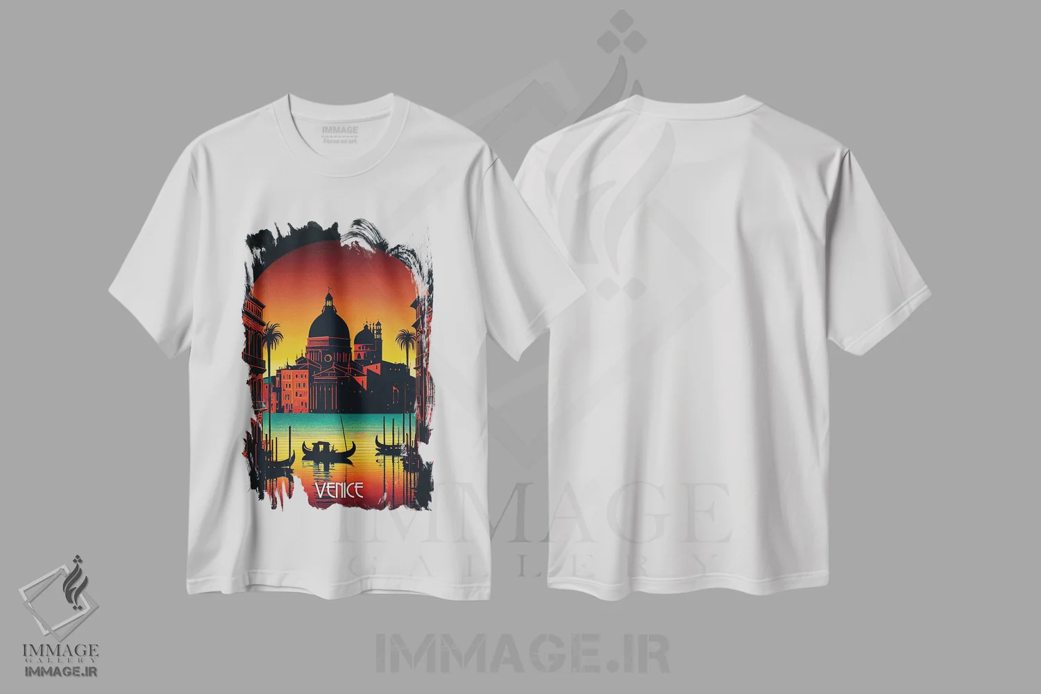 تیشرت سفید طرح دار شهر ونیز II، هنر دیجیتال اثر دورو آرت | immage.ir