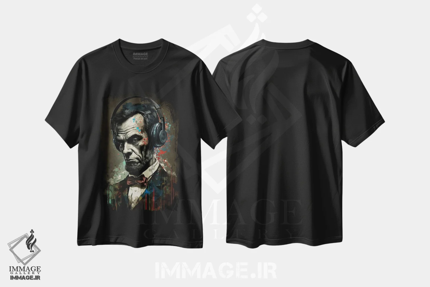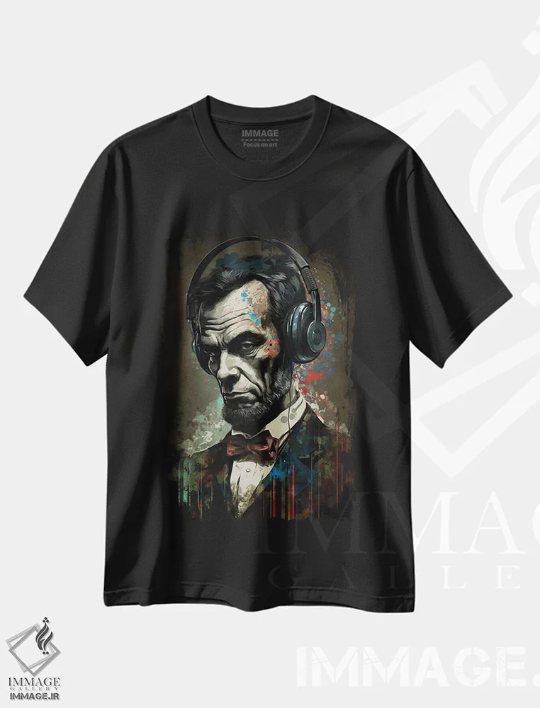 تیشرت مشکی طرح دار لینکلن با هدفون II، هنر دیجیتال اثر دورو آرت | immage.ir