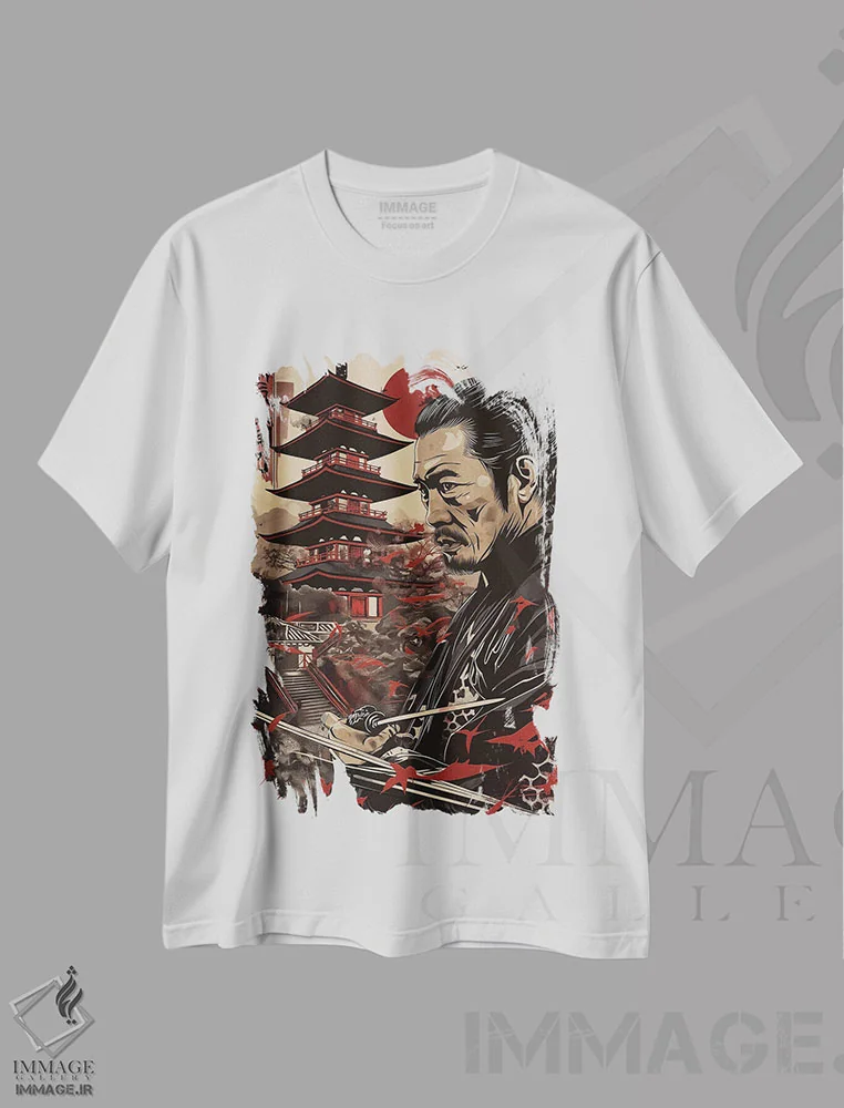 تیشرت سفید طرح دار جنگجوی سامورایی IV، دکوراسیون جایگزین اثر دورو آرت | immage.ir