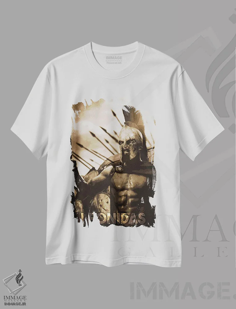 تیشرت سفید طرح دار لئونیداس، هنر دیجیتال اثر دورو آرت | فروشگاه ایماژ