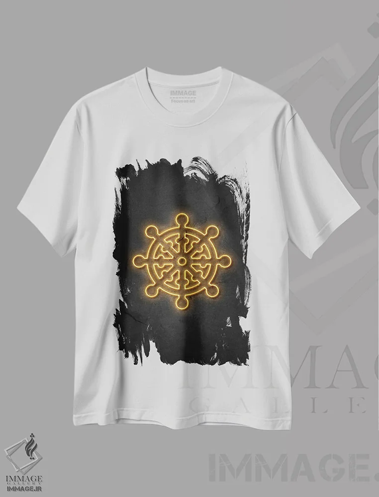 تی شرت «چرخ دارما نئونی»؛ معنویت بودایی در سبک معاصر