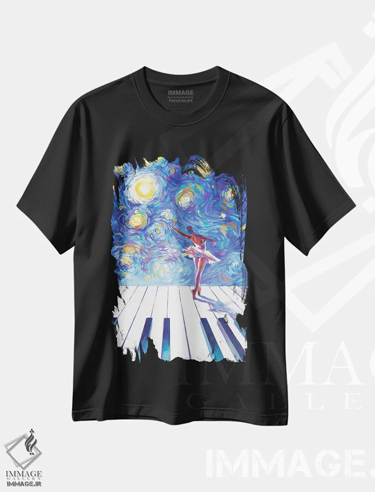 تیشرت طرح دار رقصندهٔ بالهٔ ون گوگ که به ستارگان دست می زند اثر لئون دوونیس