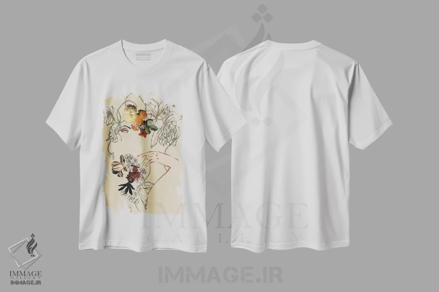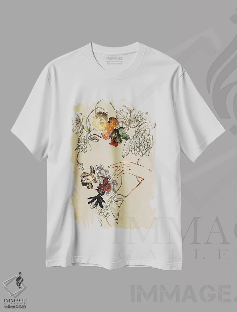 تیشرت سفید طرح دار پرترهٔ گل ها III، دست نقاشی و طراحی دستی اثر الی عظیزیان | immage.ir