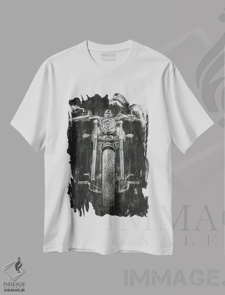 تیشرت سفید طرح دار اسب فولادی I، هنر تزئینی سیاه و سفید اثر اتان هارپر | immage.ir
