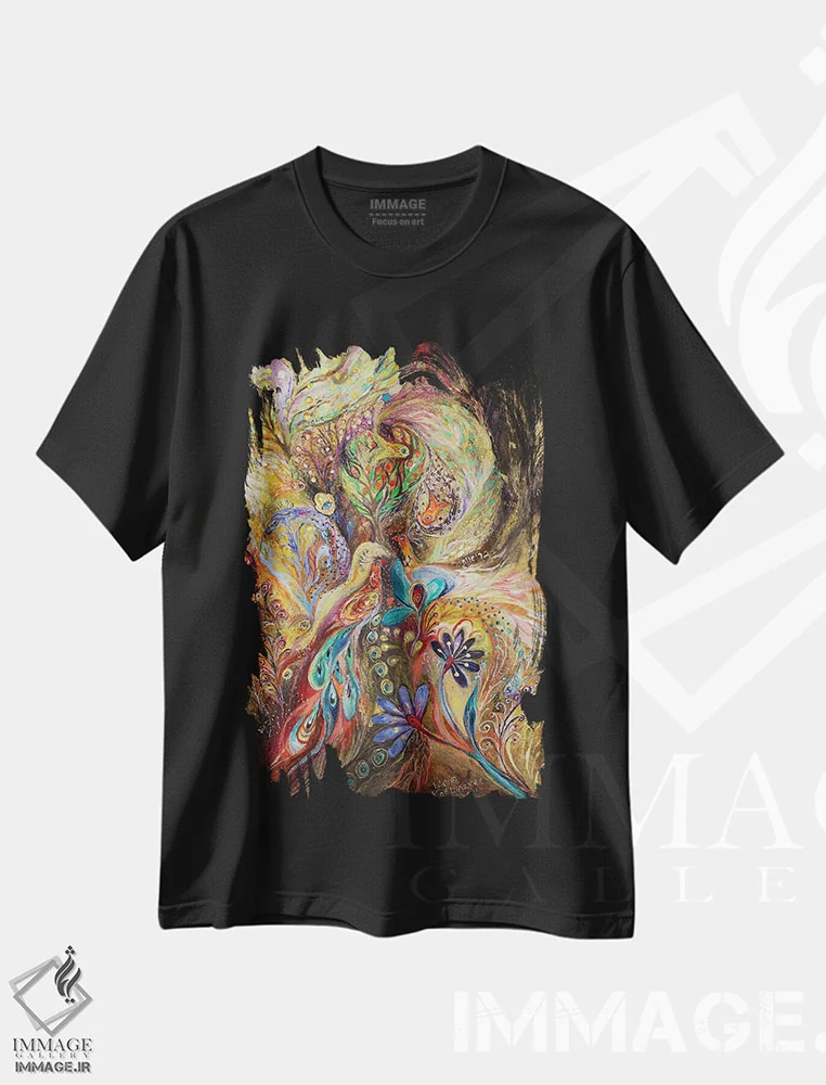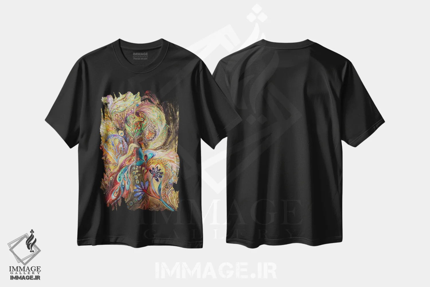 تی شرت «رویای طلایی»؛ تلفیق هارمونی طاووس و رنگ های گرم