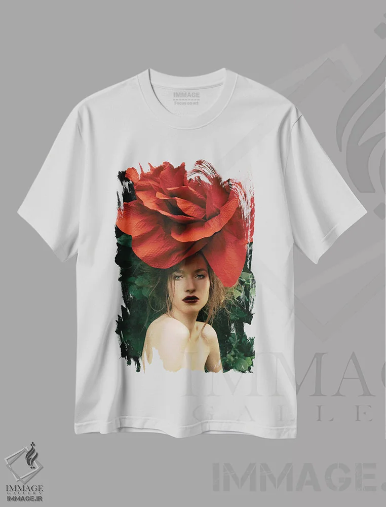 تیشرت سفید طرح دار بانوی رز، تزئینی اثر النا کولیـکووا | immage.ir