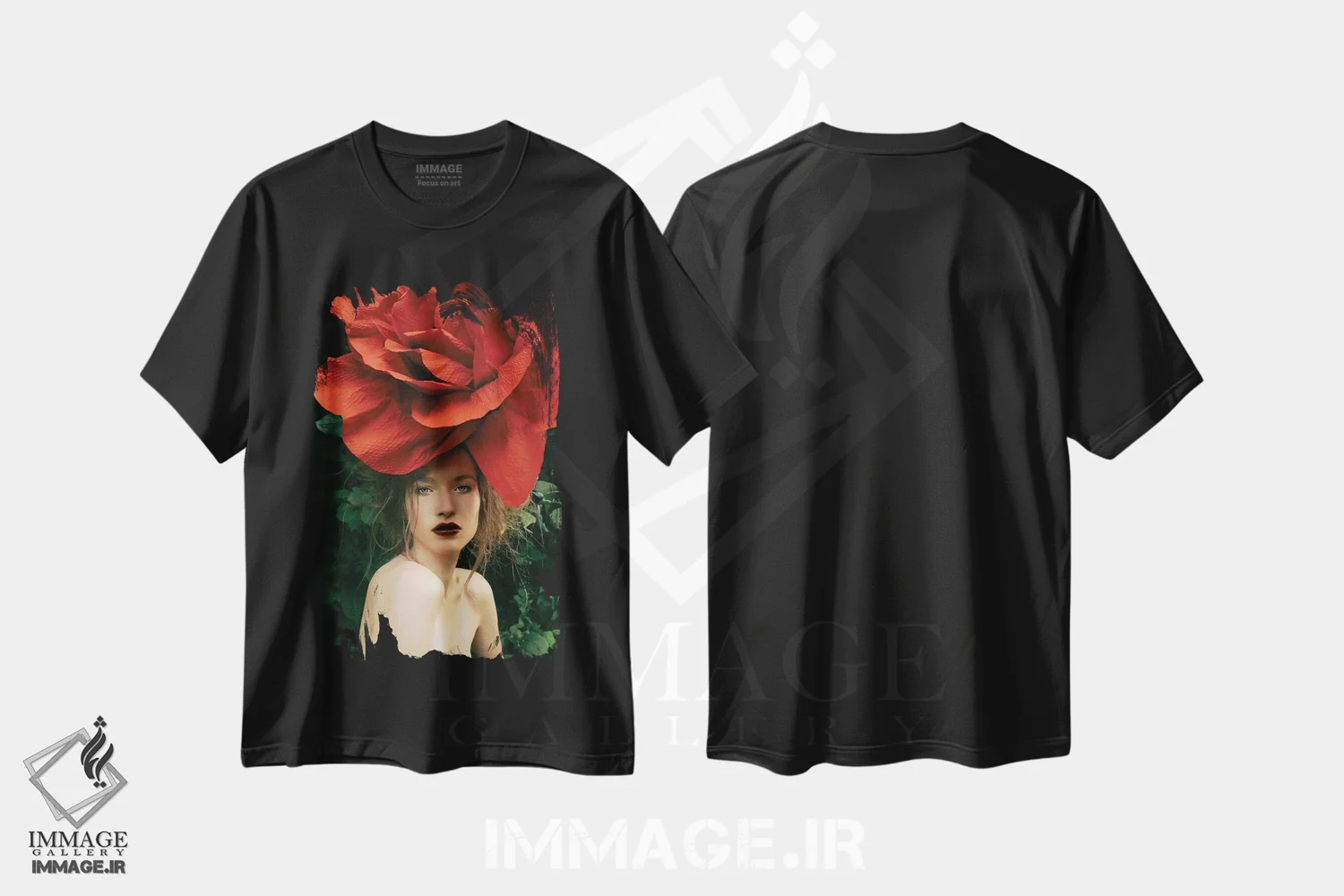 تیشرت مشکی طرح دار بانوی رز، تزئینی اثر النا کولیـکووا | فروشگاه ایماژ