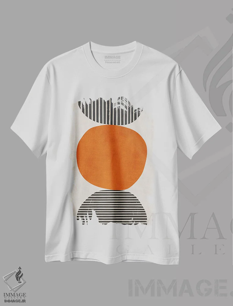 تی شرت مینیمال «دایره نارنجی و خطوط سیاه»؛ گرمای رنگ در استایل شهری