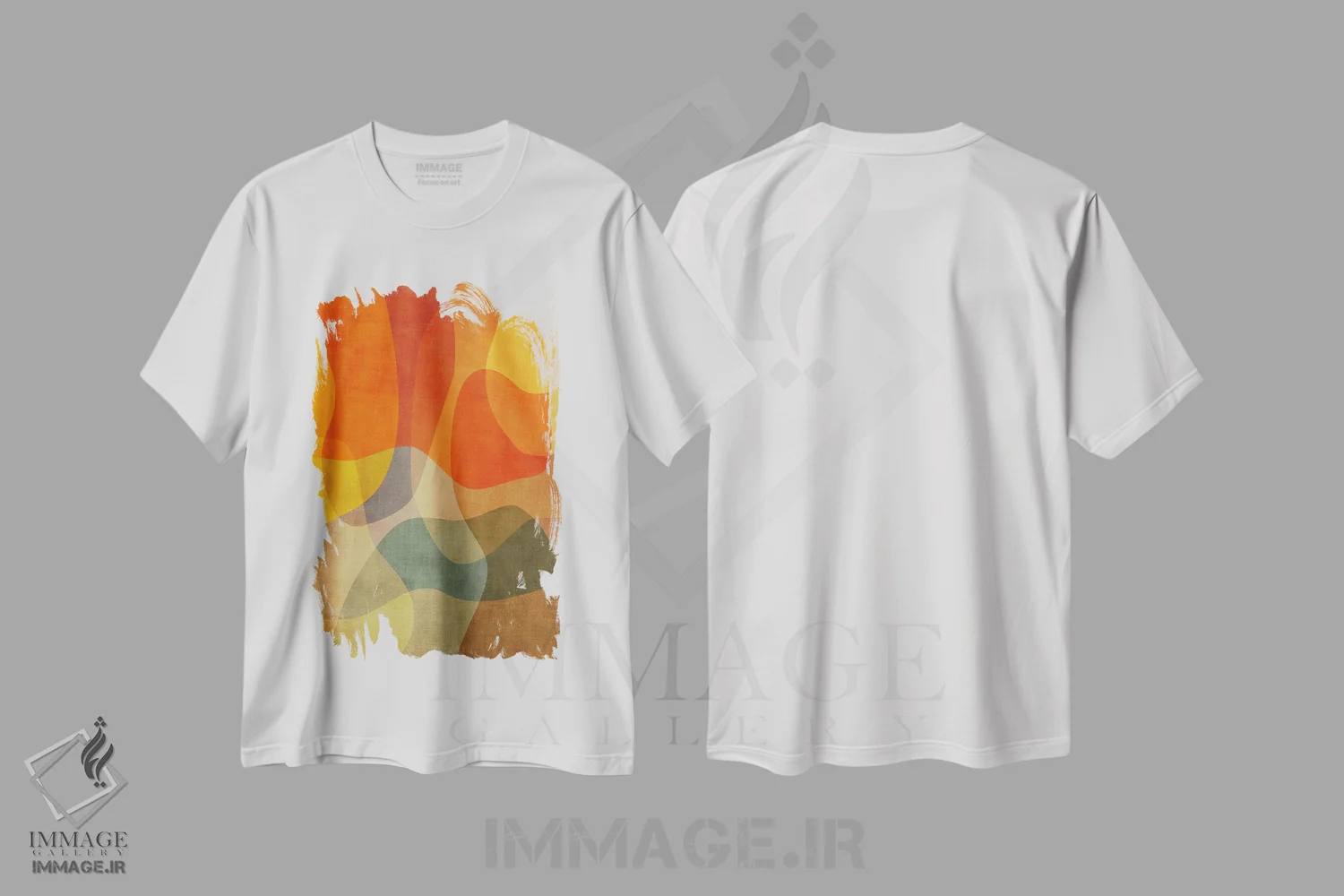 تیشرت طرح دار انتزاعی رنگ های گرم میان قرن اثر ام سی دیزاین لب