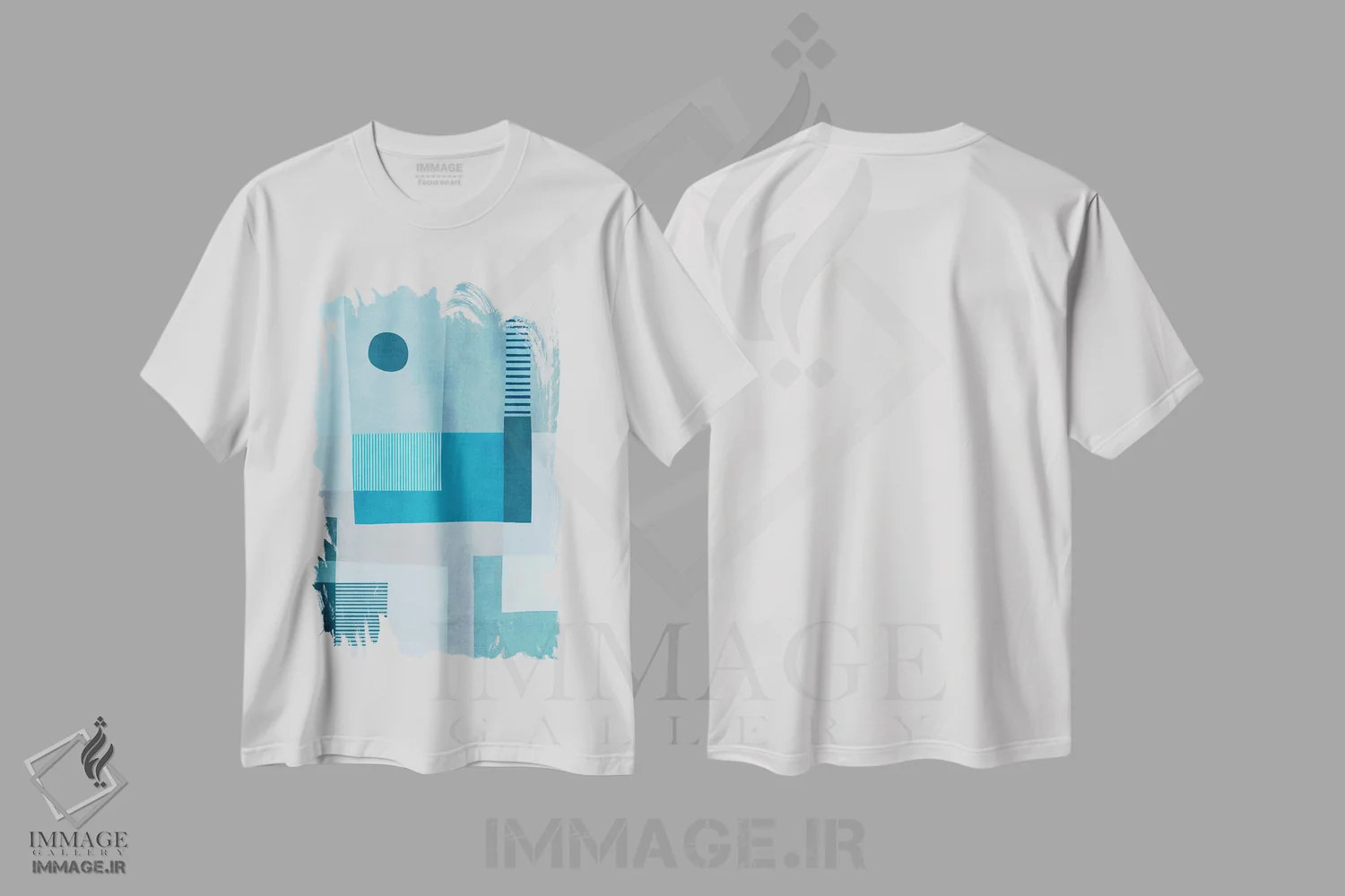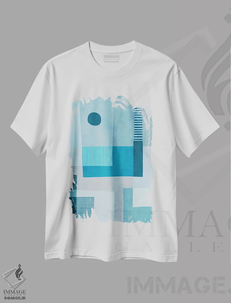 تیشرت طرح دار اثر هنری انتزاعی با تونالیته آبی II اثر ام سی دیزاین لب