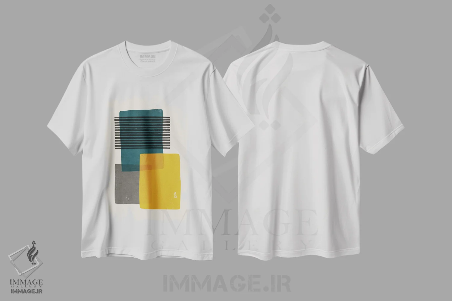 تیشرت طرح دار مدرن خردلی فیروزه ای خاکستری اثر ام سی دیزاین لب