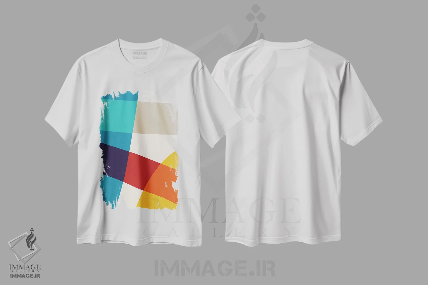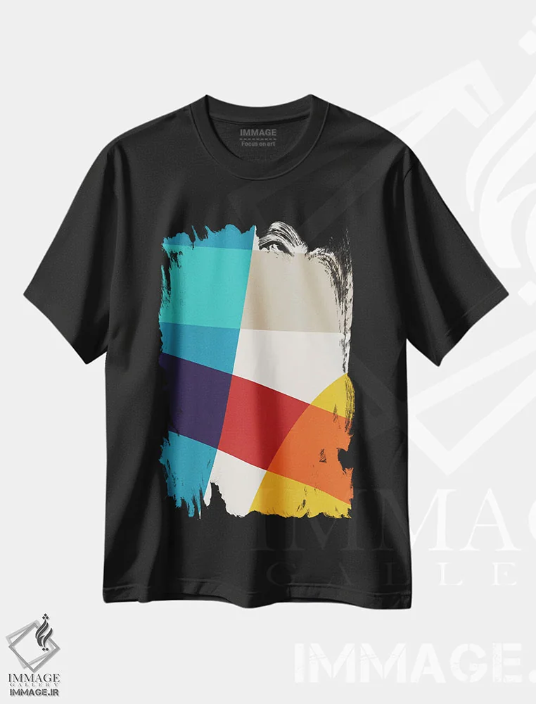 تی شرت انتزاعی «قرمز، زرد، آبی، بژ»؛ استایل هنری مدرن