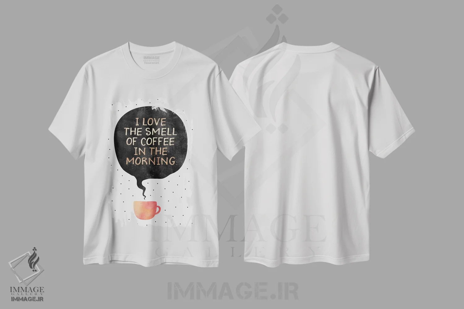 تیشرت سفید طرح دار عاشق بوی قهوه صبحگاهی هستم، تزئینی اثر الیزابت فردریکسون | immage.ir