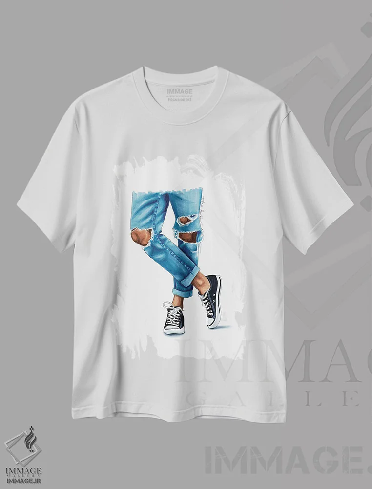 تیشرت سفید طرح دار کفش های راحتی، تزئینی اثر الزا فوچه | immage.ir