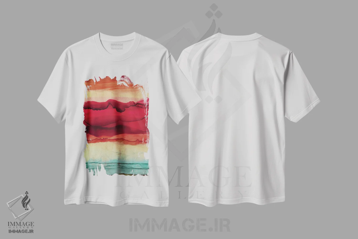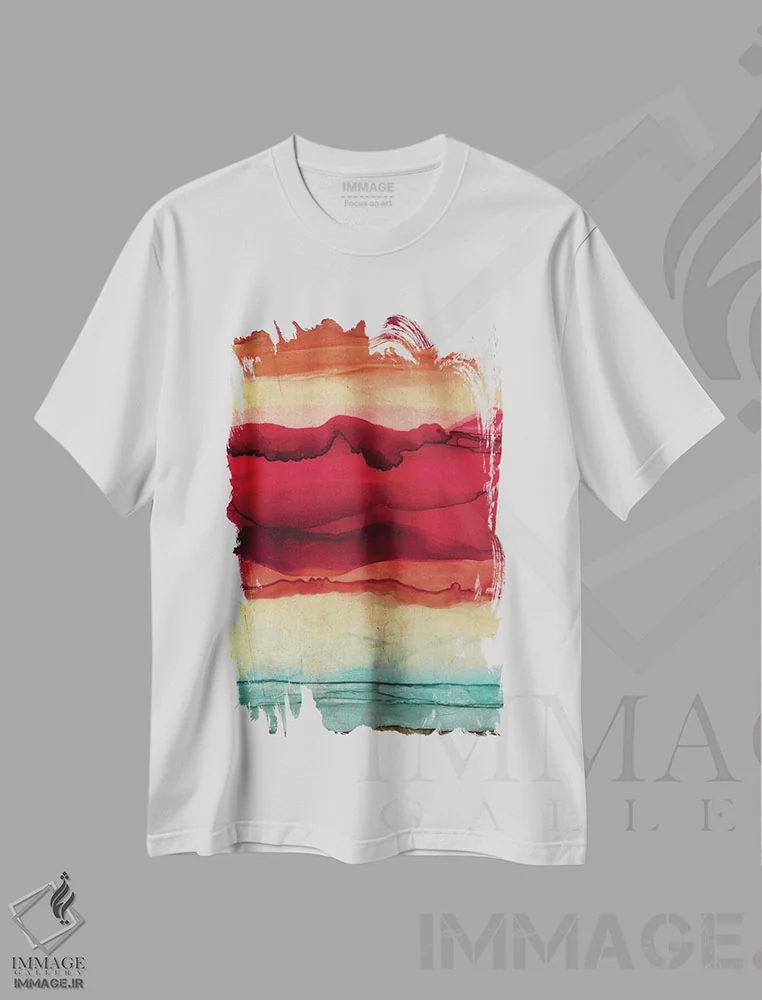 تیشرت سفید طرح دار نقاشی抽象 کوهستان جدید اثر الیزابت مدلی | immage.ir