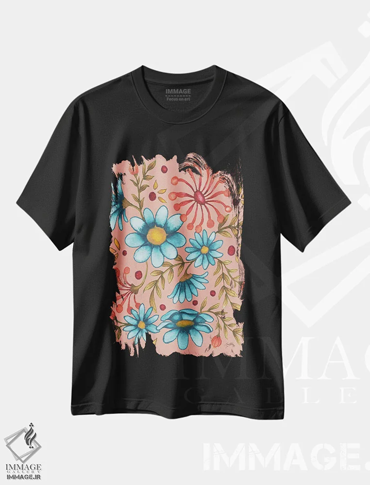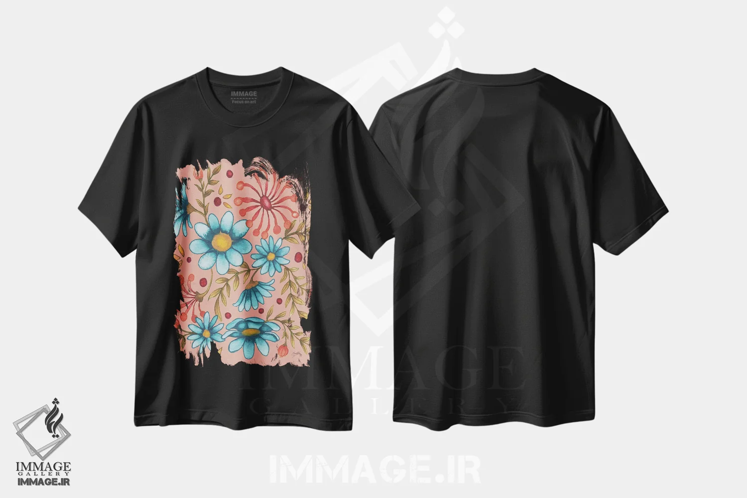 تیشرت مشکی طرح دار بهار و گل ۲، تزئینی اثر الیزابت مدلی | immage.ir