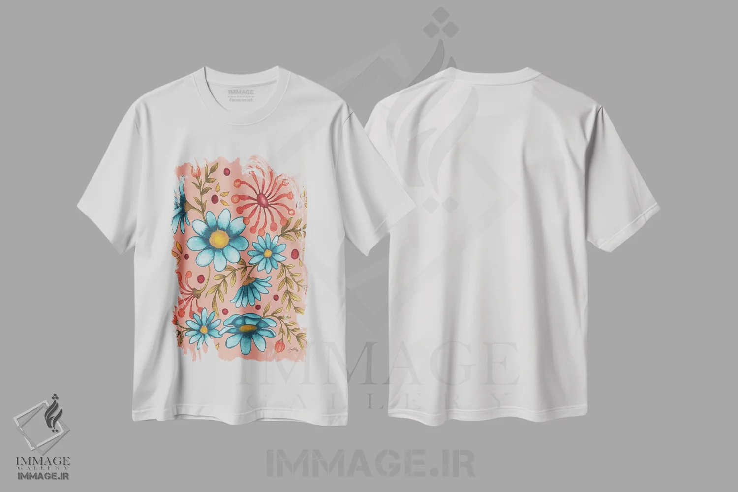 تیشرت سفید طرح دار بهار و گل ۲، تزئینی اثر الیزابت مدلی | فروشگاه ایماژ