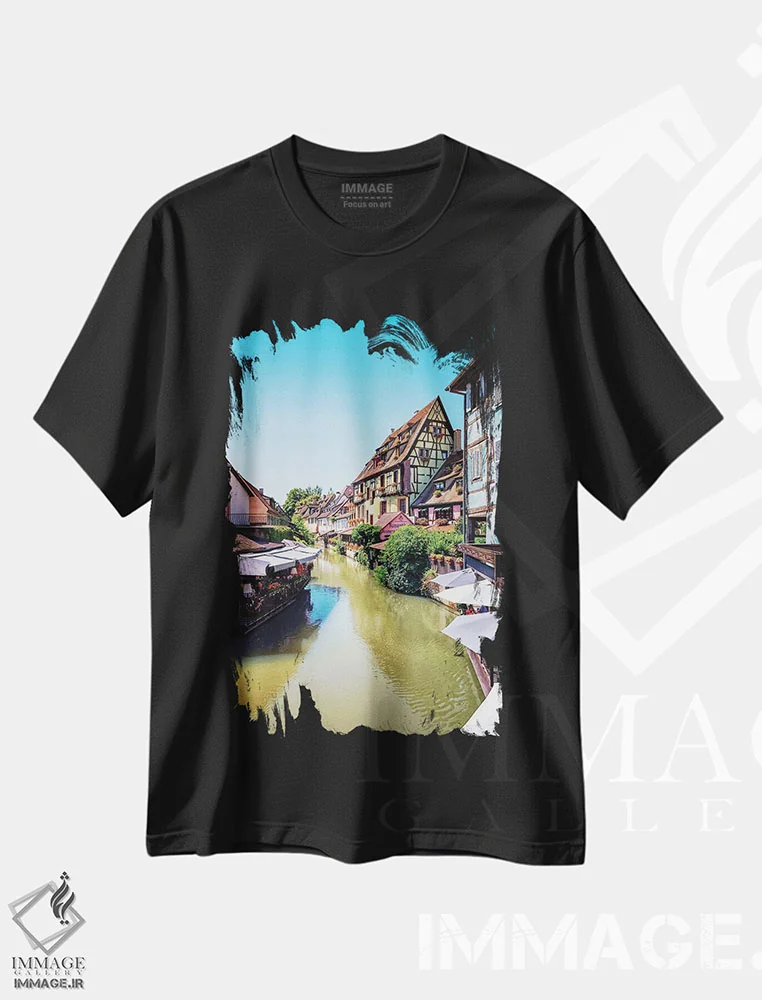 تیشرت مشکی طرح دار شهر کولمار، مدیوم اثر مانجیک پیکچرز | immage.ir