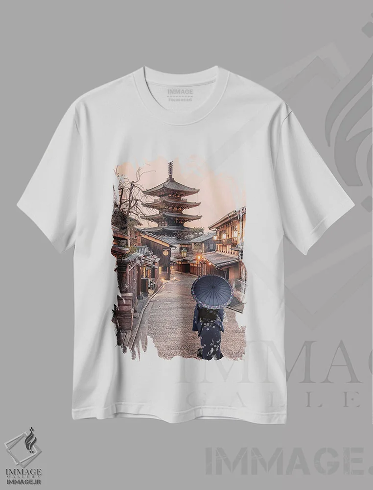 تیشرت طرح دار غروب کیوتو اثر مانجیک پیکچرز