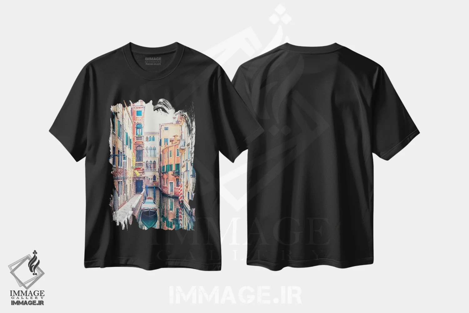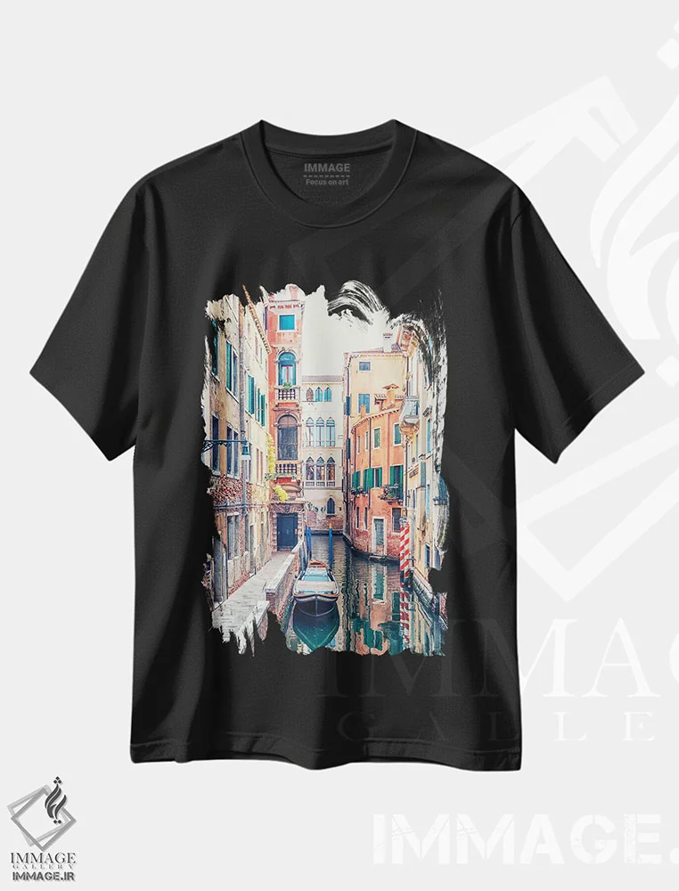 تیشرت مشکی طرح دار کانال در ونیز، مدیوم اثر مانجیک پیکچرز | immage.ir