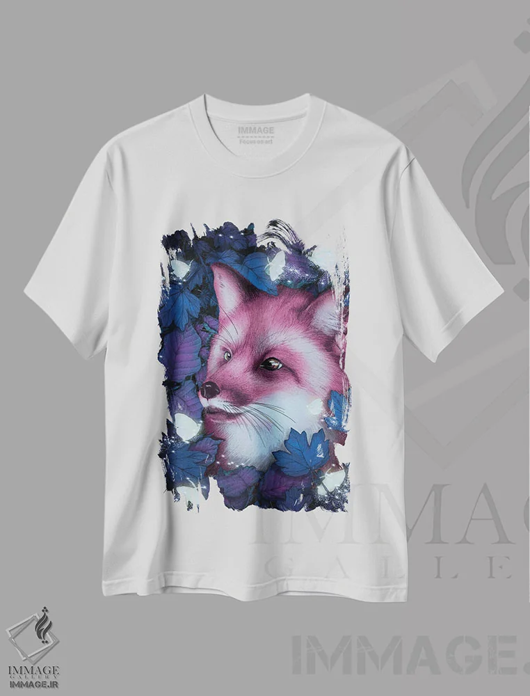 تیشرت سفید طرح دار روباه در جنگل نیمه شب، دکور معاصر اثر الا مازور | immage.ir