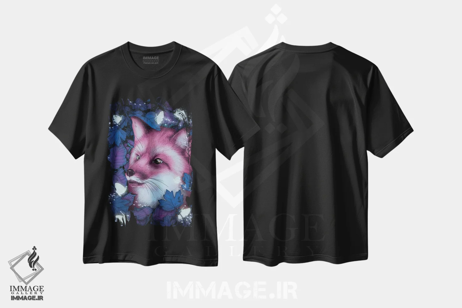 تیشرت مشکی طرح دار روباه در جنگل نیمه شب، دکور معاصر اثر الا مازور | فروشگاه ایماژ