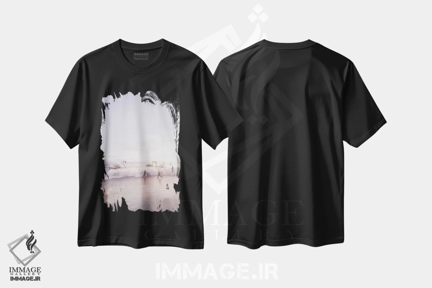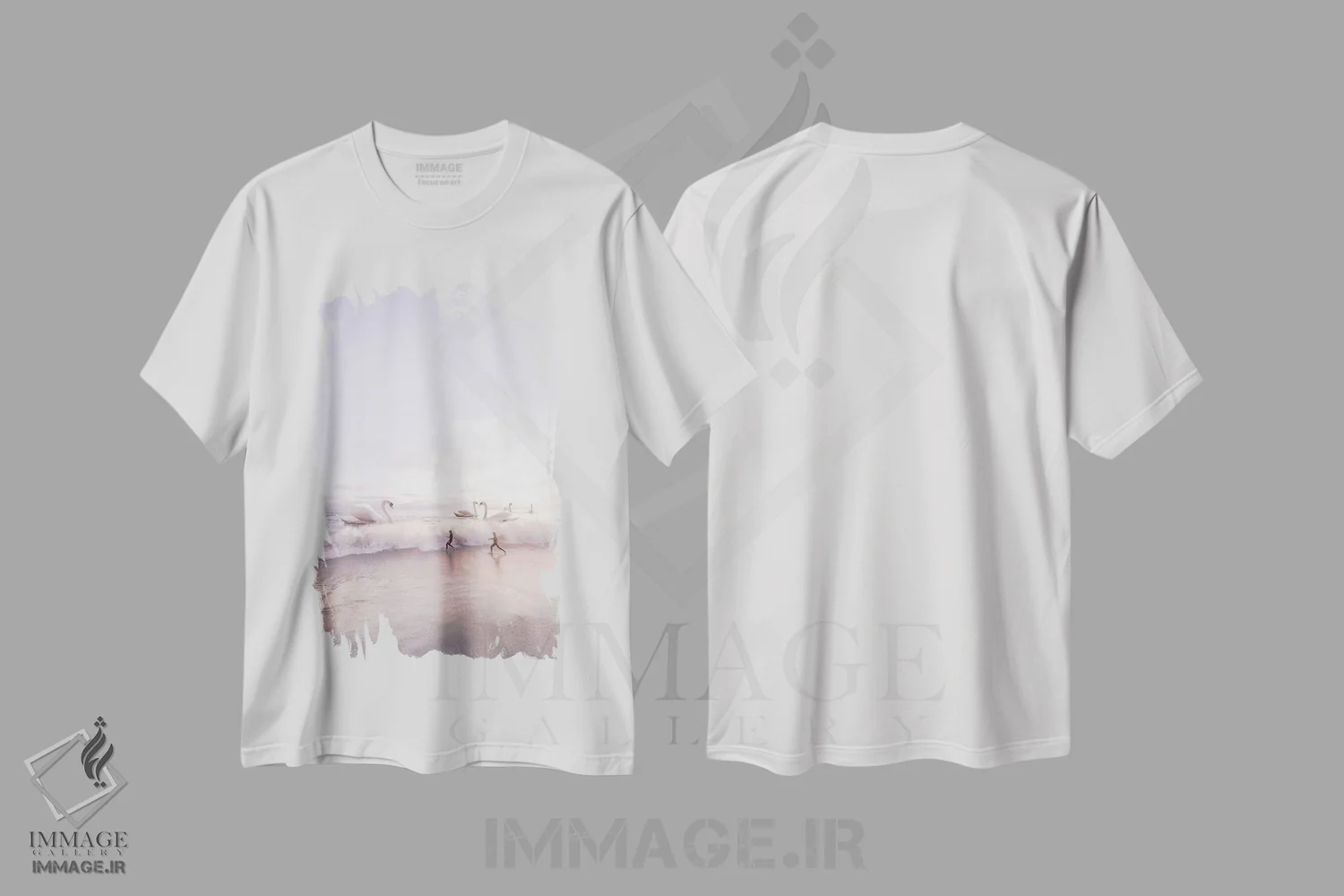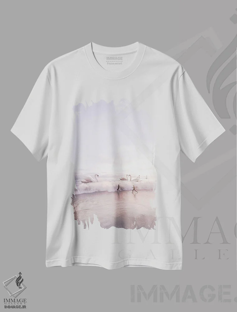 تی شرت «رویاپردازان»؛ قوها بر ساحل شنی