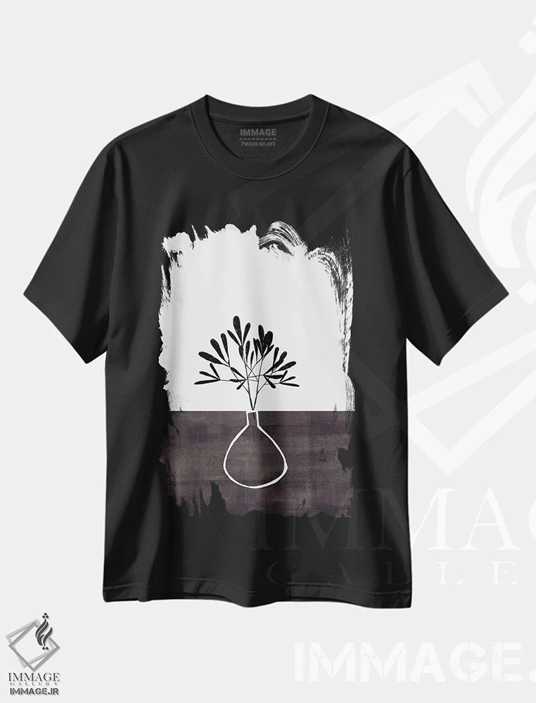 تی شرت «گلدان جوهر مشکی»؛ مینیمالیسم هنری در پوشش