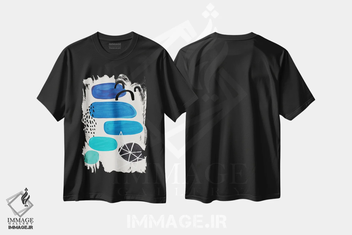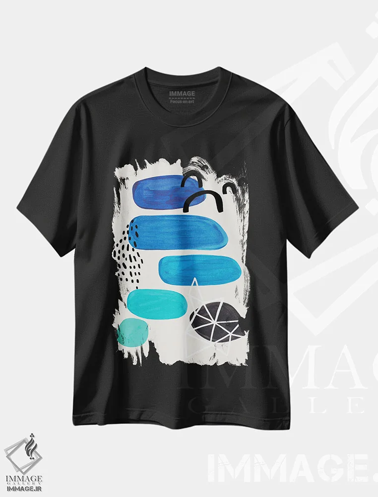 تیشرت مشکی طرح دار هفت دریا، آبستره اثر ان شیپ | immage.ir