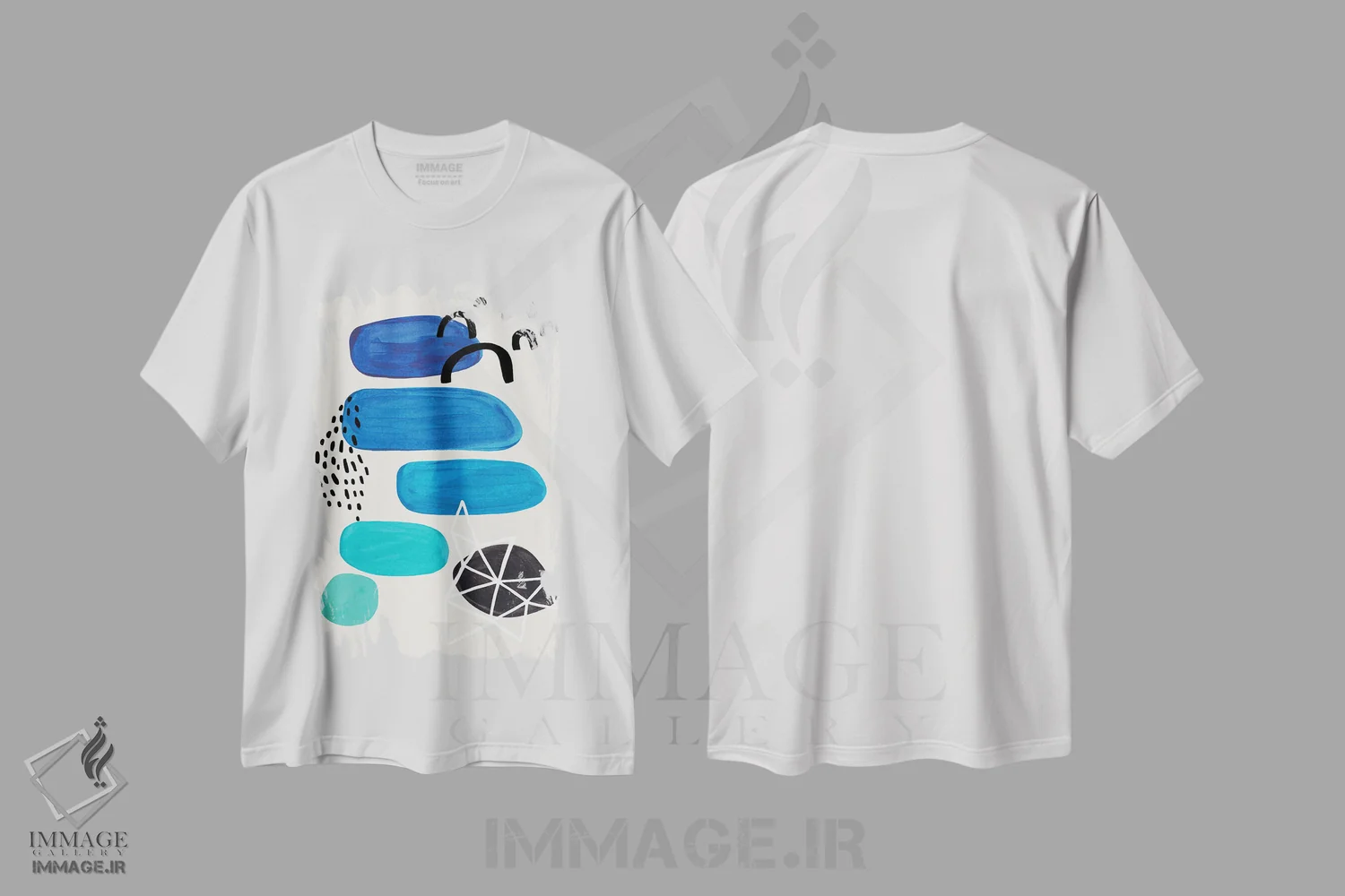 تیشرت سفید طرح دار هفت دریا، آبستره اثر ان شیپ | فروشگاه ایماژ