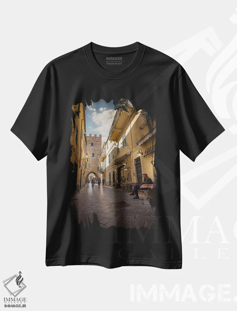 تیشرت مشکی طرح دار نولی، لیگوریا، ایتالیا، مدیوم اثر انزو رومانو | immage.ir