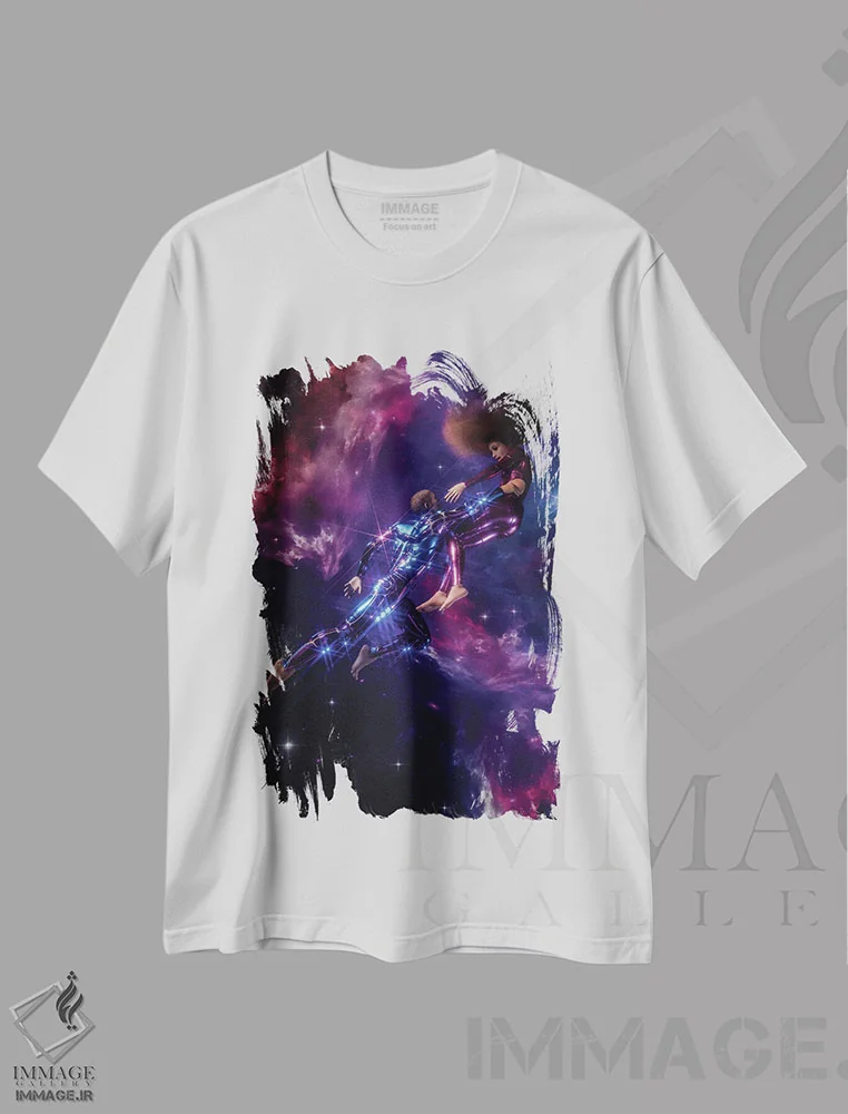 تی شرت هنری «با من پرواز کن»؛ تلفیق رمانتیسم و سبک سایبرپانک