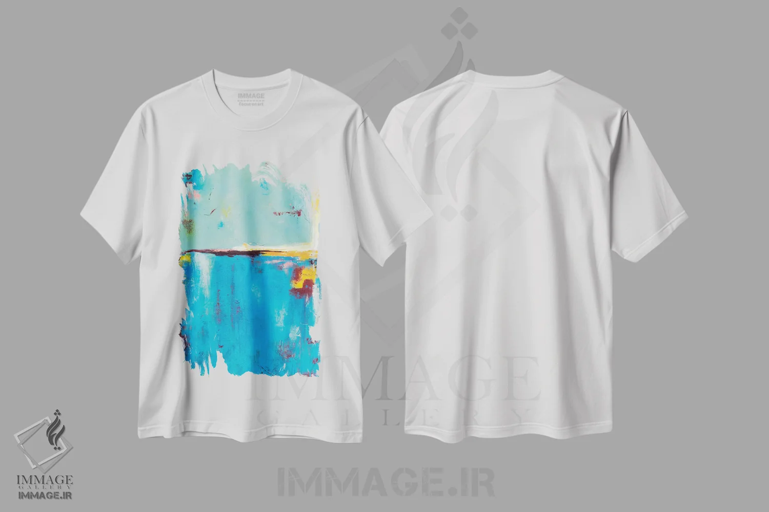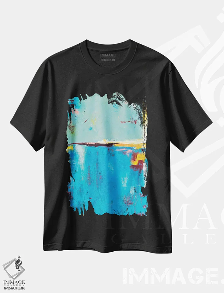 تی شرت هنری «آبی جعبه کبریت ۵۵» با ترکیب رنگ های جسور
