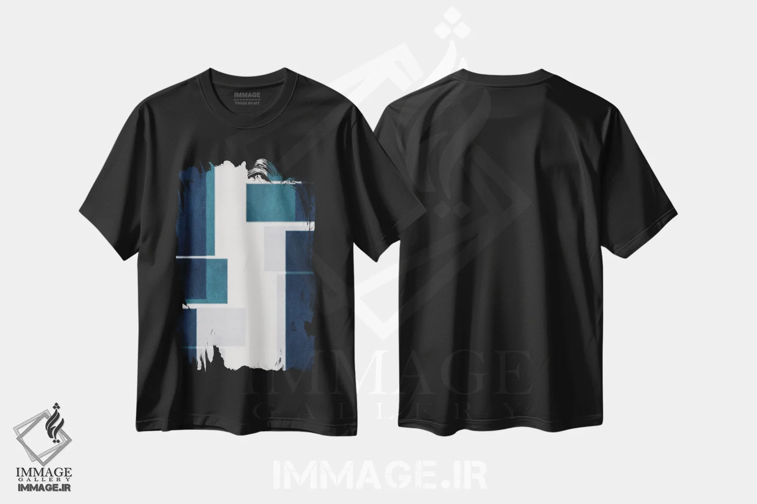 تیشرت مشکی طرح دار سایه های آبی اثر روبرتو مورو | فروشگاه ایماژ