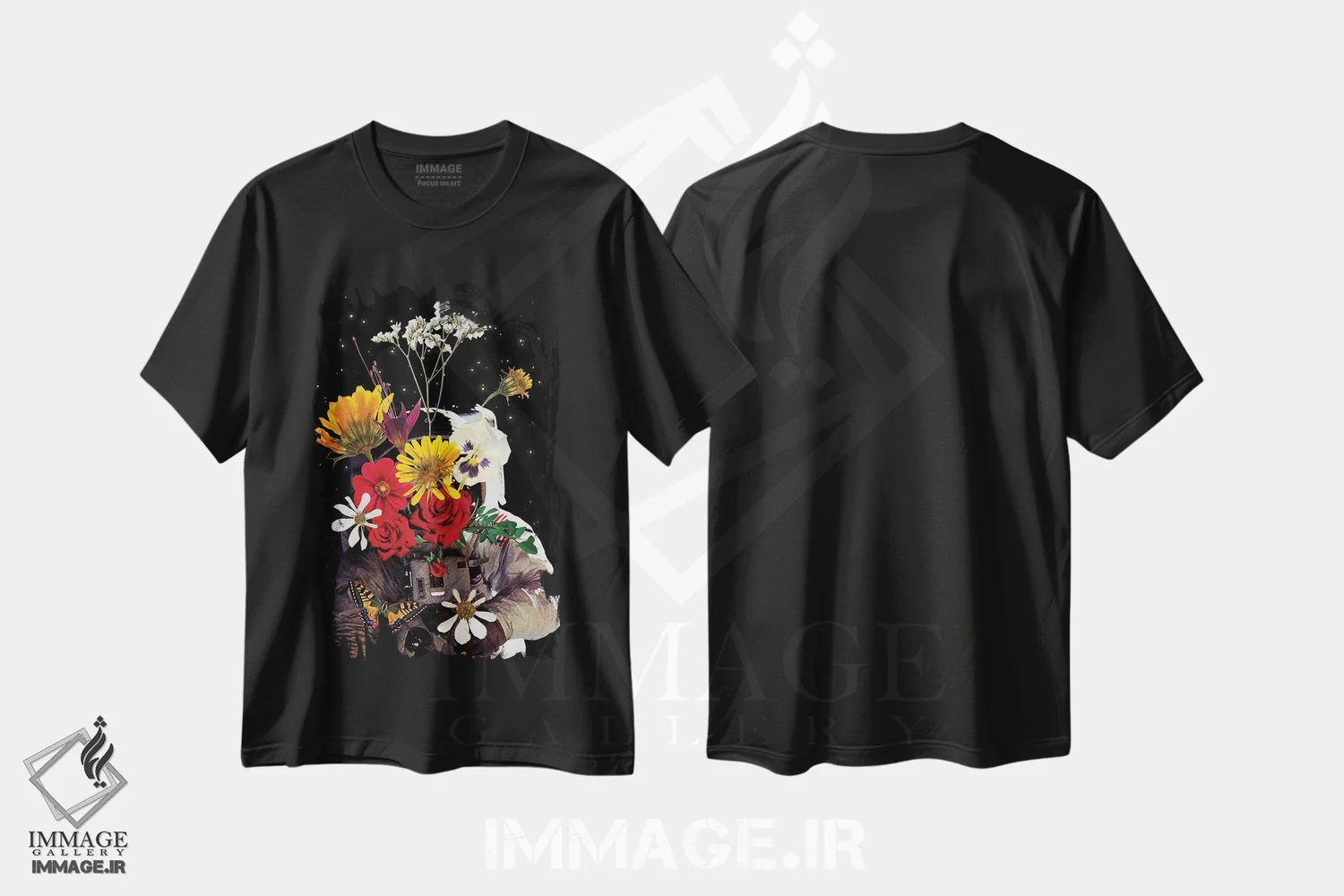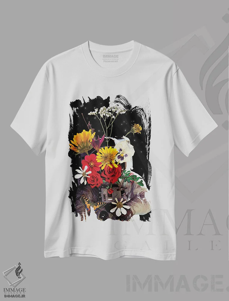 تیشرت طرح دار هنر کلاژ گل فضانوردی اثر ادسون راموس