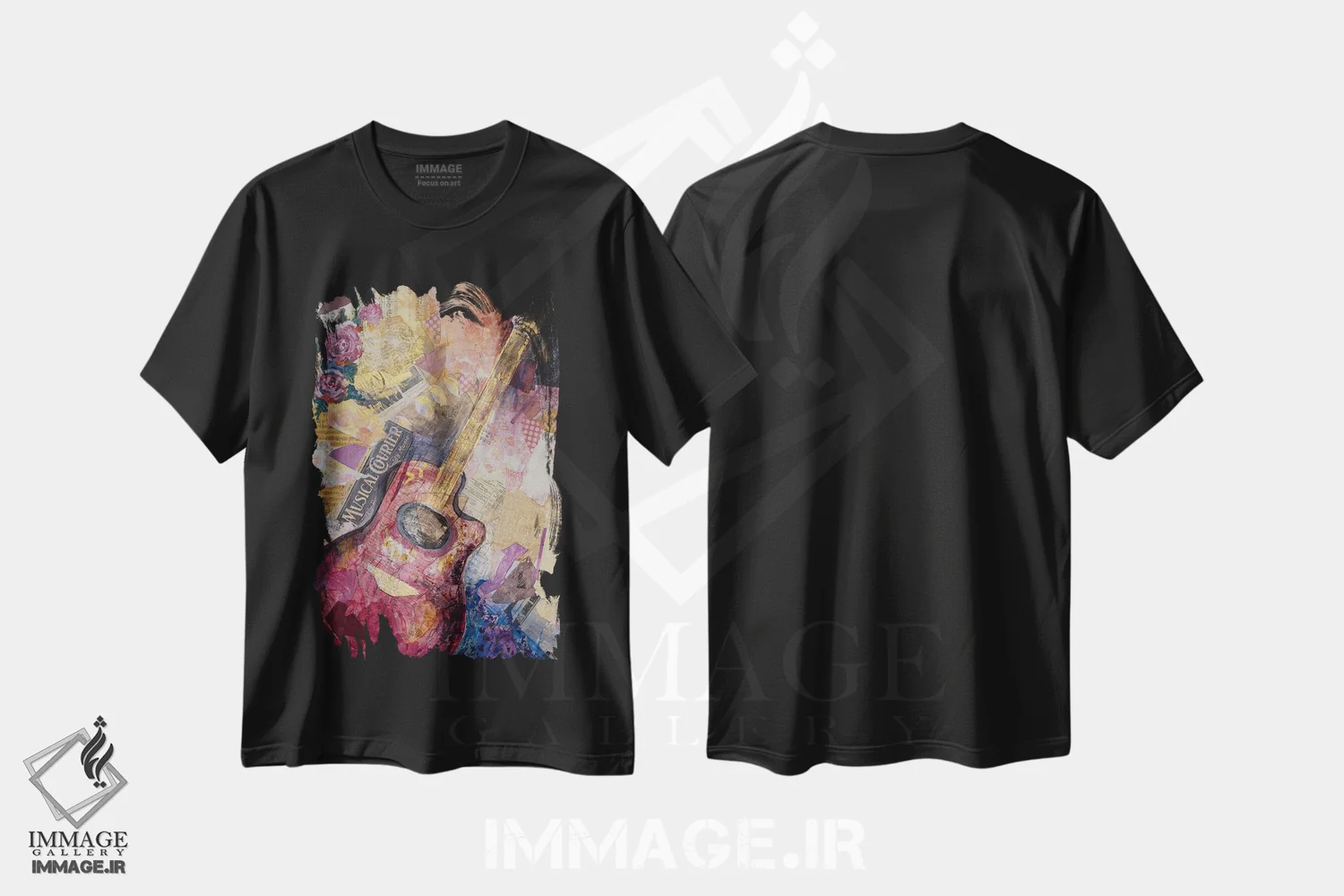 تیشرت مشکی طرح دار گیتار قرمز، دکور معاصر اثر الیری ریـدال | فروشگاه ایماژ