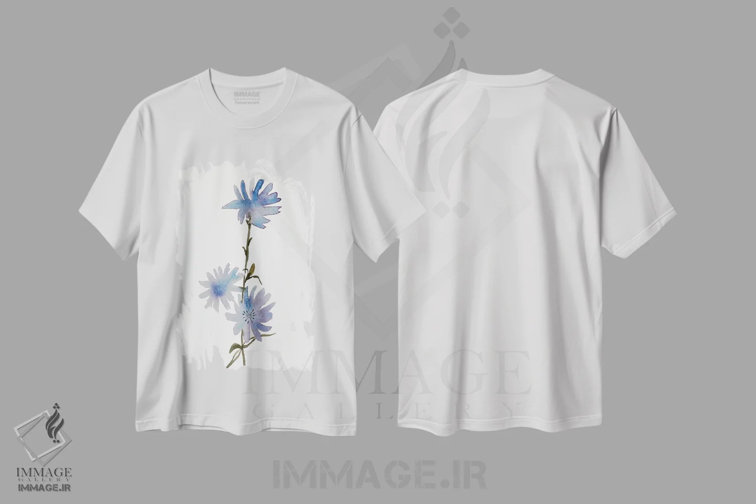 تیشرت سفید طرح دار کاسنی، هنر فاخر معاصر اثر الیزابت بکر | فروشگاه ایماژ