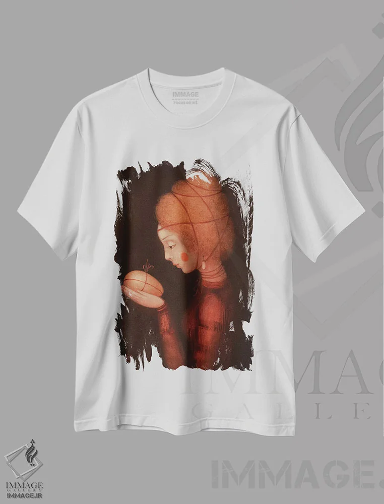 تیشرت سفید طرح دار دختر آتشین، هنر فاخر معاصر اثر ادوارد زنتسیک | immage.ir