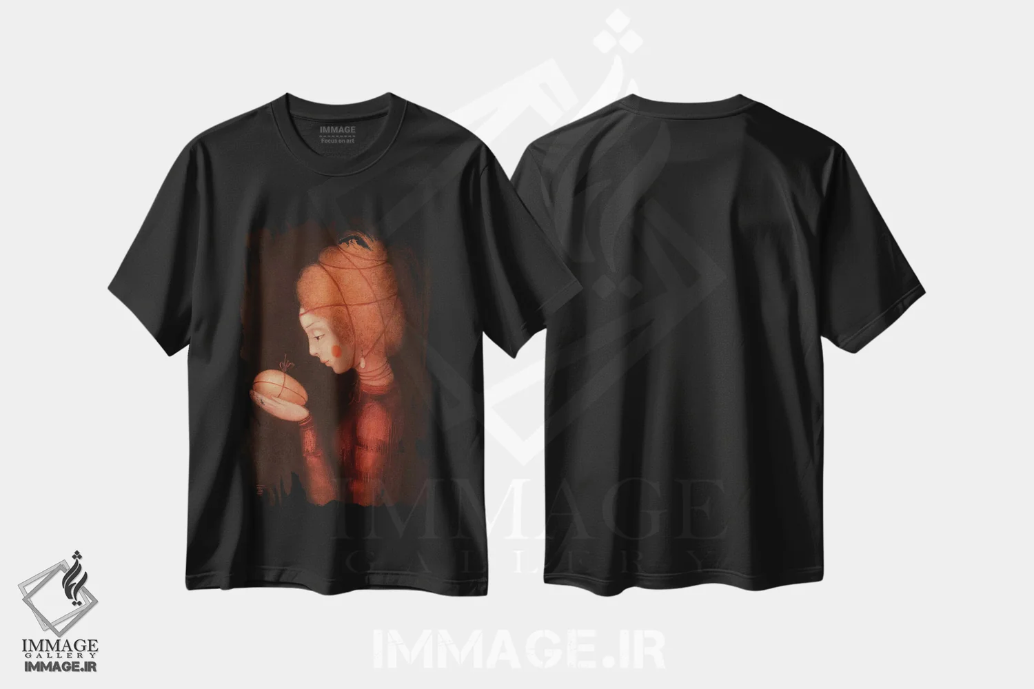 تیشرت مشکی طرح دار دختر آتشین، هنر فاخر معاصر اثر ادوارد زنتسیک | فروشگاه ایماژ