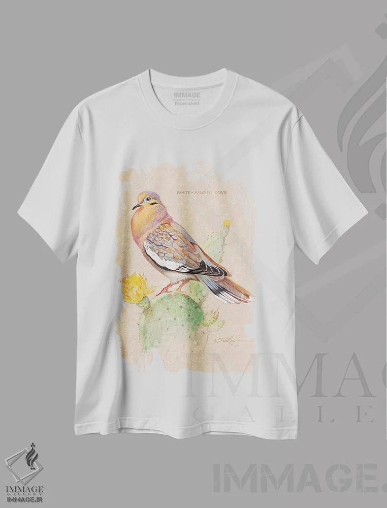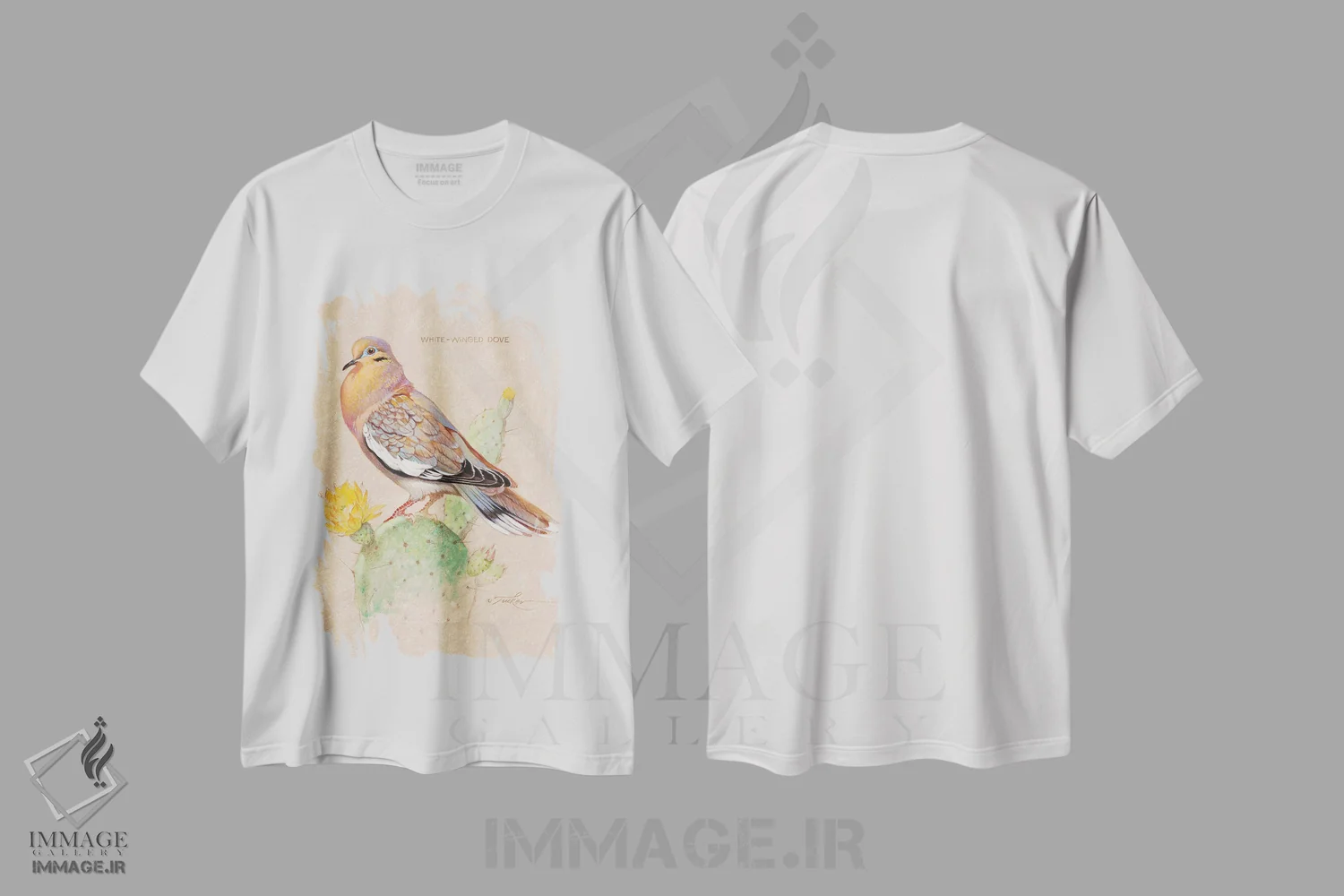 تی شرت «قمری سفیدبال روی کاکتوس»؛ ترکیب پرنده و گیاه
