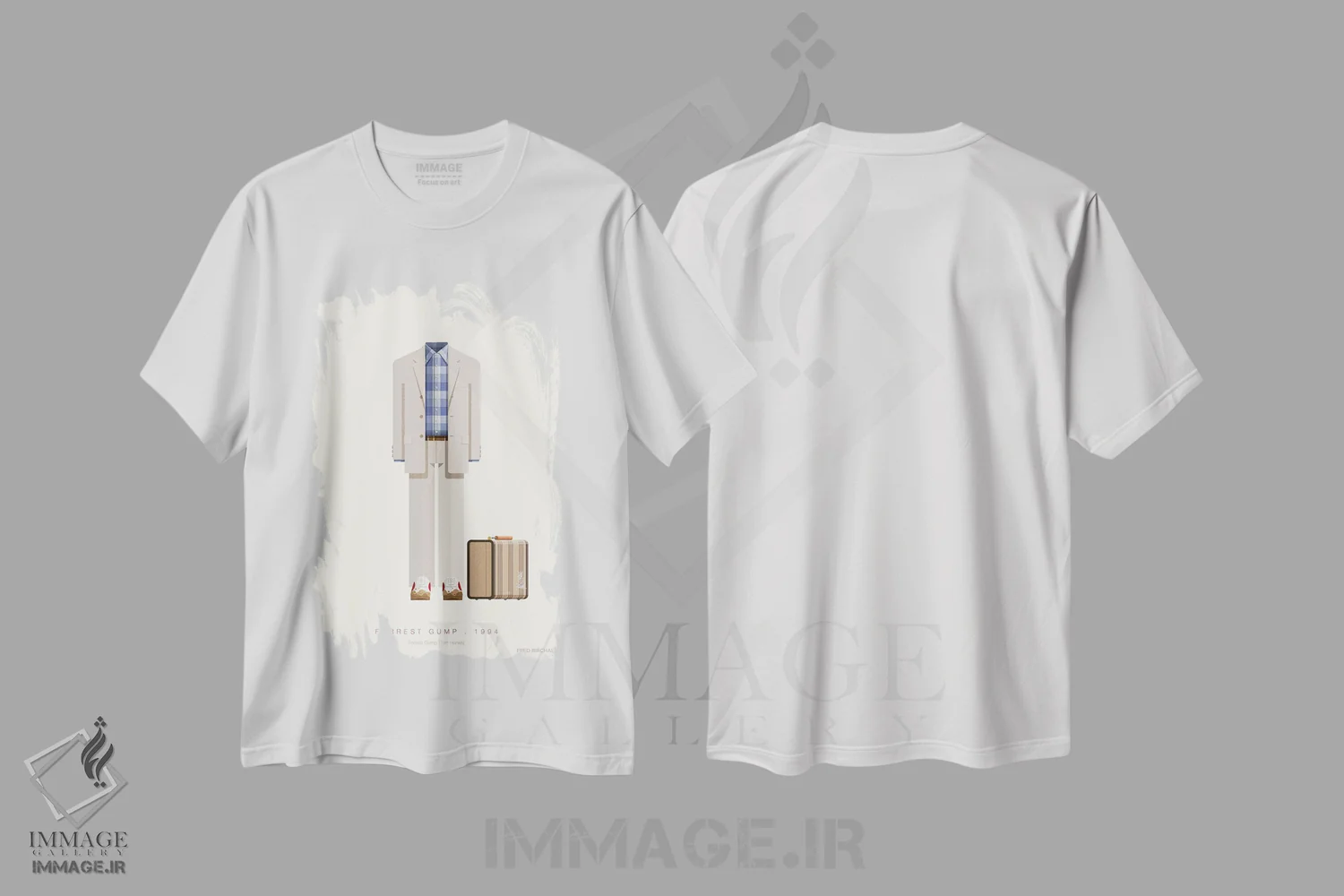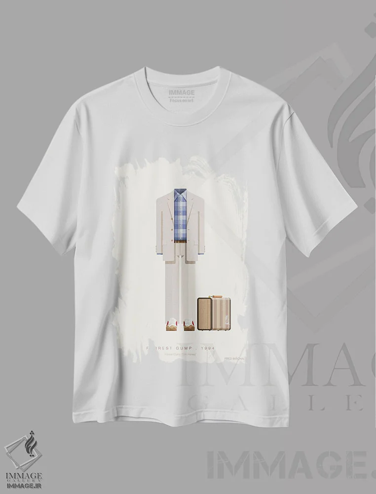 تیشرت سفید طرح دار فارست گامپ، ۱۹۹۴، تزئینی اثر فرد بیرچال | immage.ir