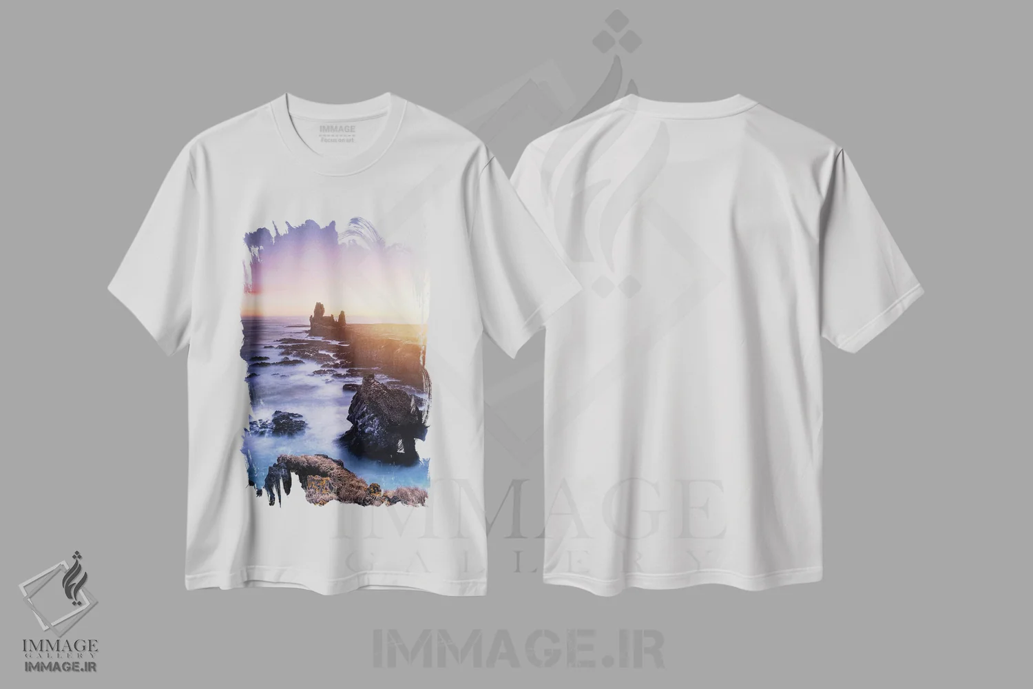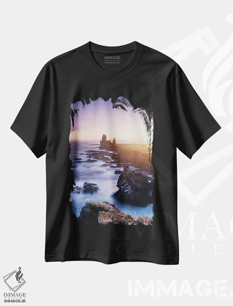 غروب ساحلی؛ تی شرت منظره با رنگ های گرم