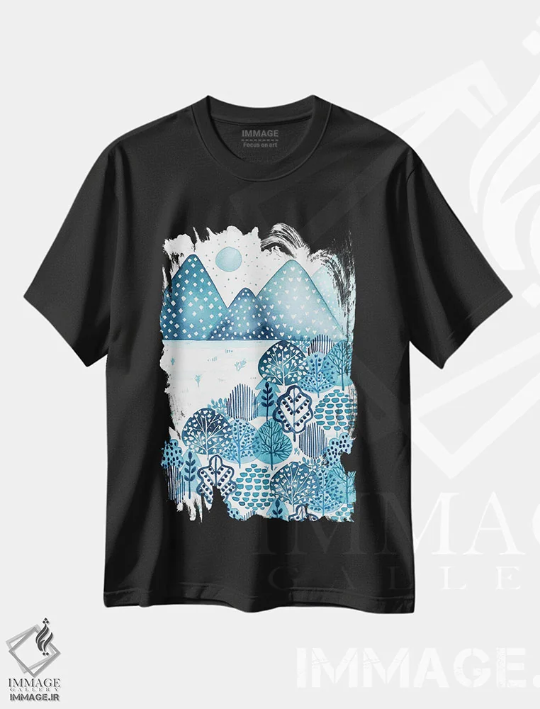 تی شرت «کوه آبی»؛ آرامش طبیعت در طرح آبرنگی