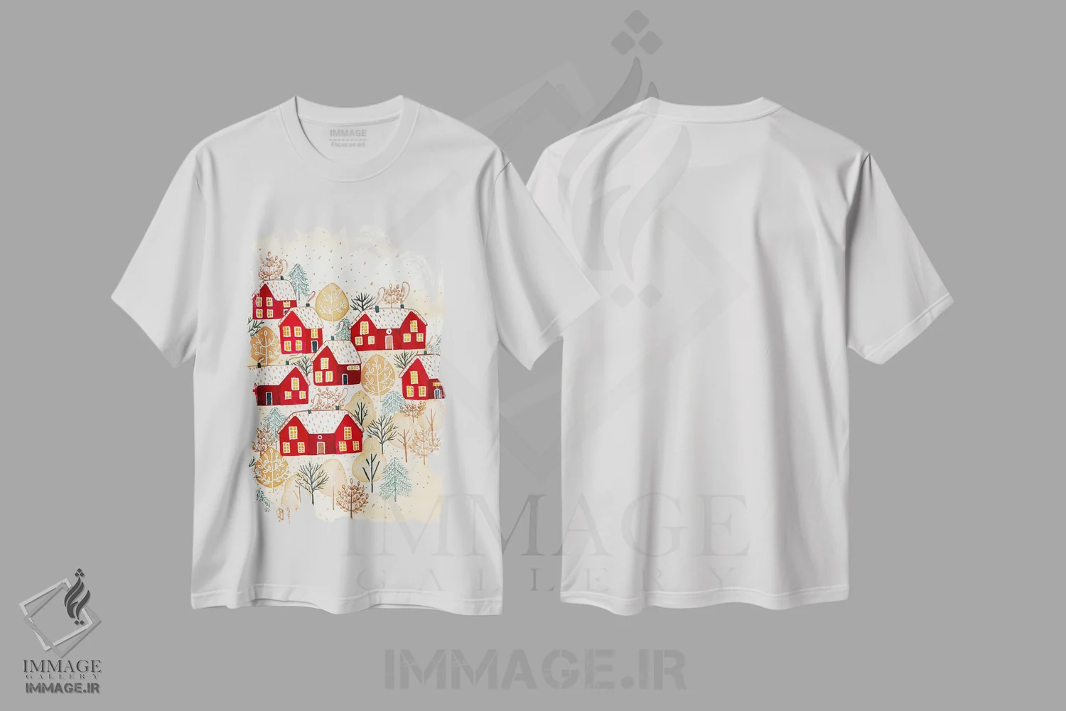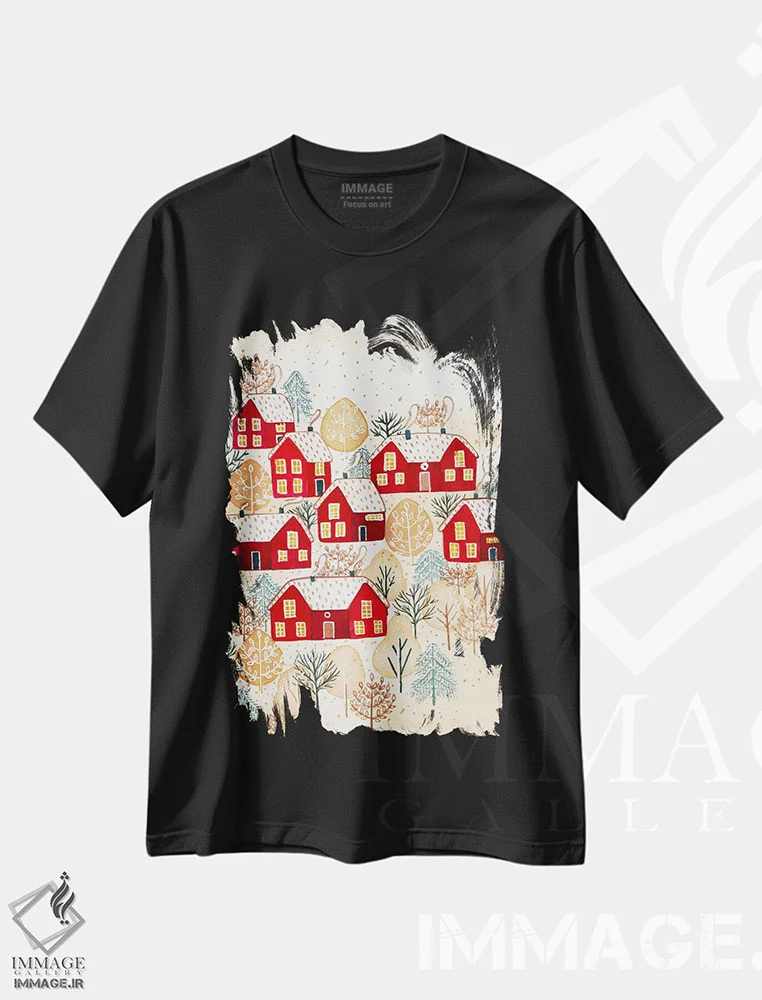 تیشرت طرح دار روستای طلایی زمستانی اثر اف ان کی دیزاینز