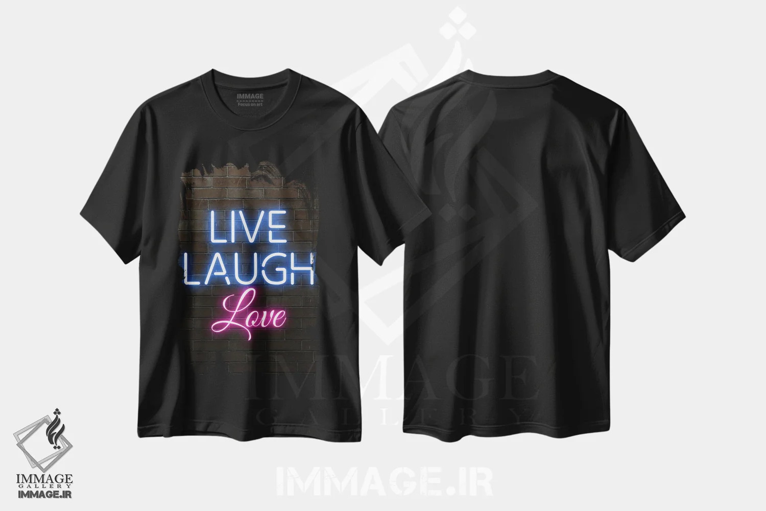 تی شرت «زندگی کن، بخند، دوست بدار» با نئون آبی و صورتی
