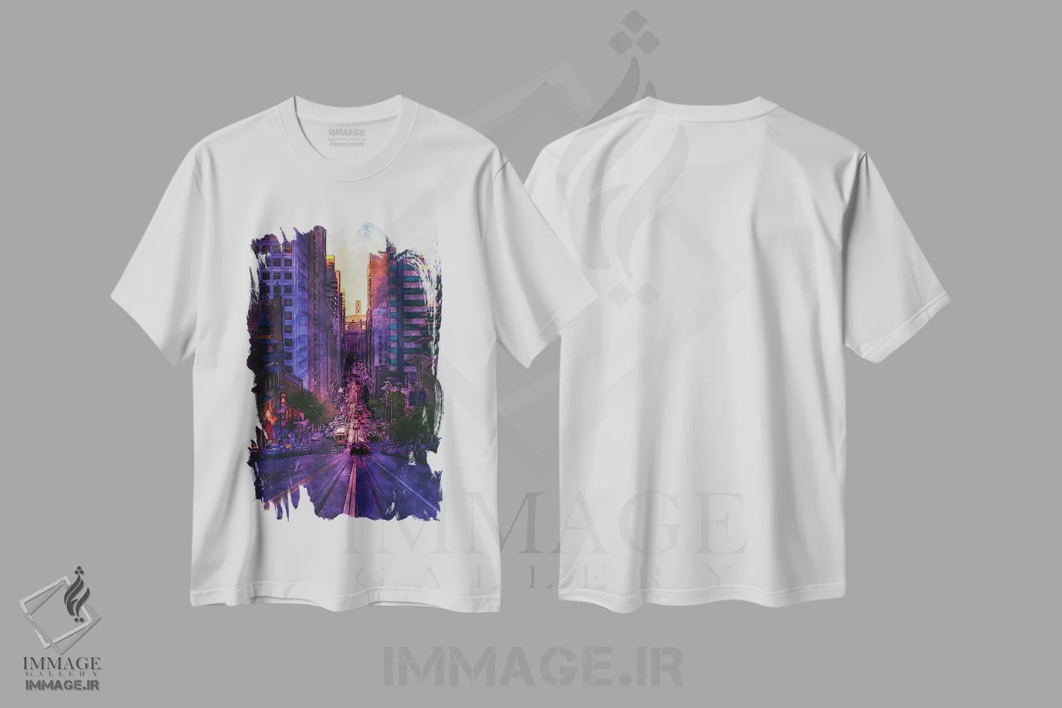 تیشرت سفید طرح دار خیابان سان فرانسیسکو، هنر دیجیتال اثر فیشرکرافت | فروشگاه ایماژ